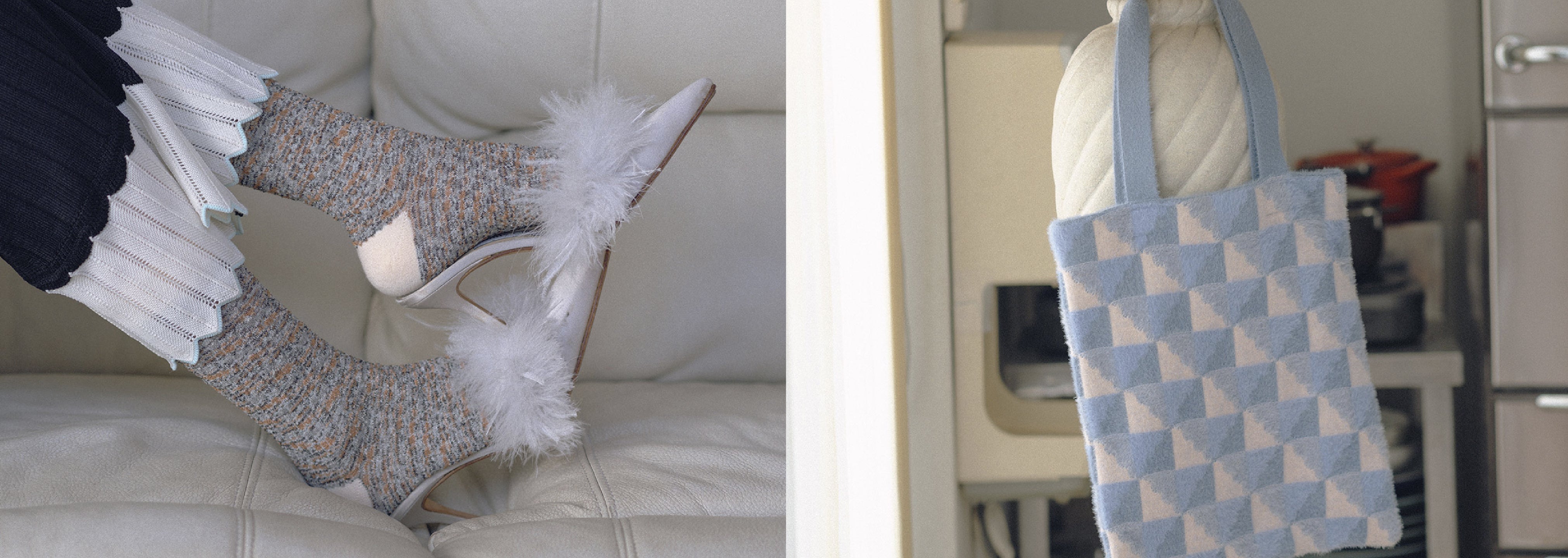 Collaboration series of knitted items with Familiar’s plaid pattern