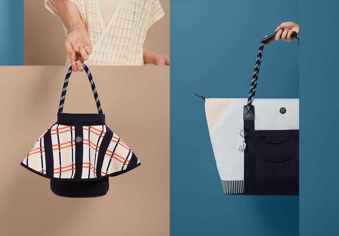 Bag series that can be made by combining shapes to suit different uses. You can customise them freely by combining your favourite materials and colours.