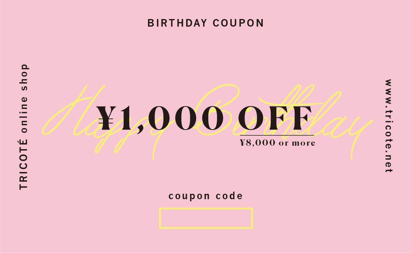 お誕生月に、¥8,000 以上でご利用いただける BIRTHDAY COUPON ¥1,000 クーポンをプレゼント!!